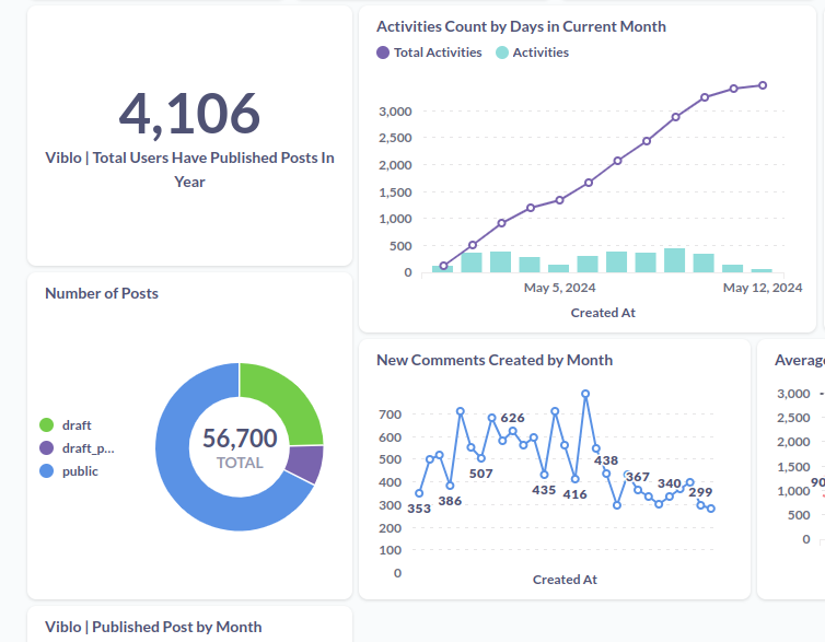 Một số chỉ số thống kê trên Metabase của Viblo.