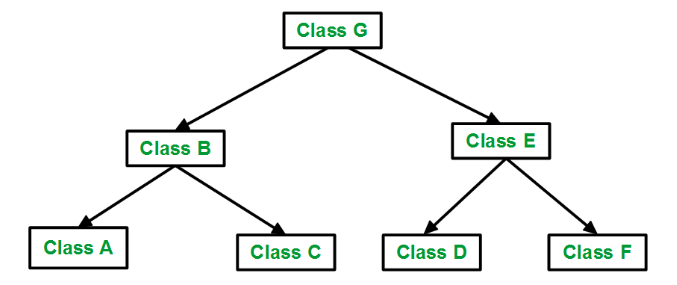 - Kế thừa phân cấp: có nhiều hơn 1 lớp con kế thừa từ một lớp cha. Và các class con được kế thừa các thuộc tính của class mà class cha được kế thừa.