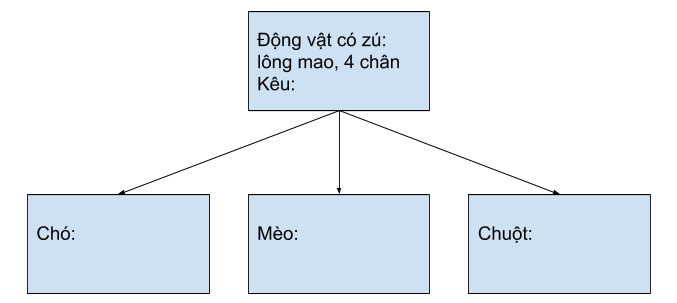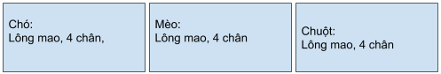Giả sử: cần xây dựng các đối tượng: chó, mèo, chuột. Có các thuộc tính: lông mao, 4 chân. obj: Chó obj: Mèo obj: Chuột