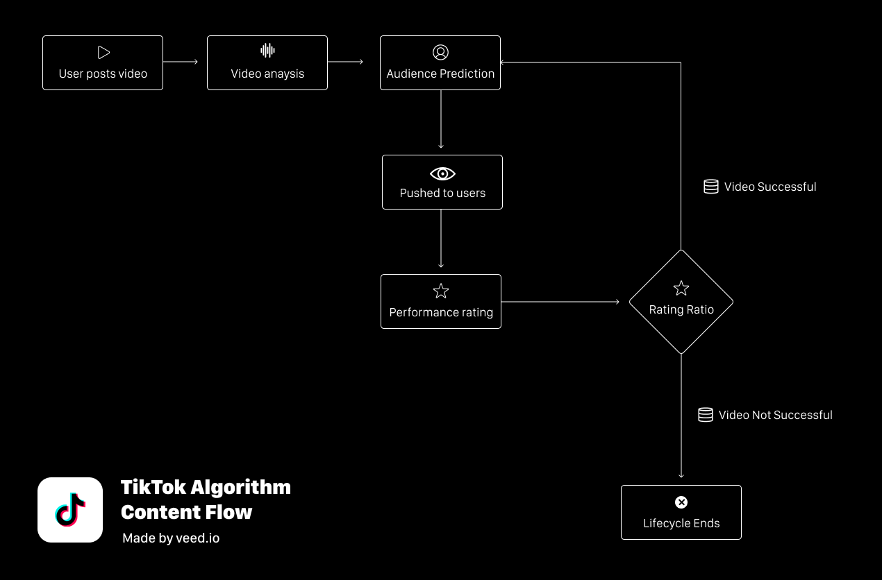 Khi bạn mở Tiktok, bạn sẽ thấy một số video khác nhau về các chủ đề khác nhau. Dựa trên cách bạn tương tác với từng video (xem lại, thích, chia sẻ, bỏ qua), một video mới sẽ được sắp xếp.