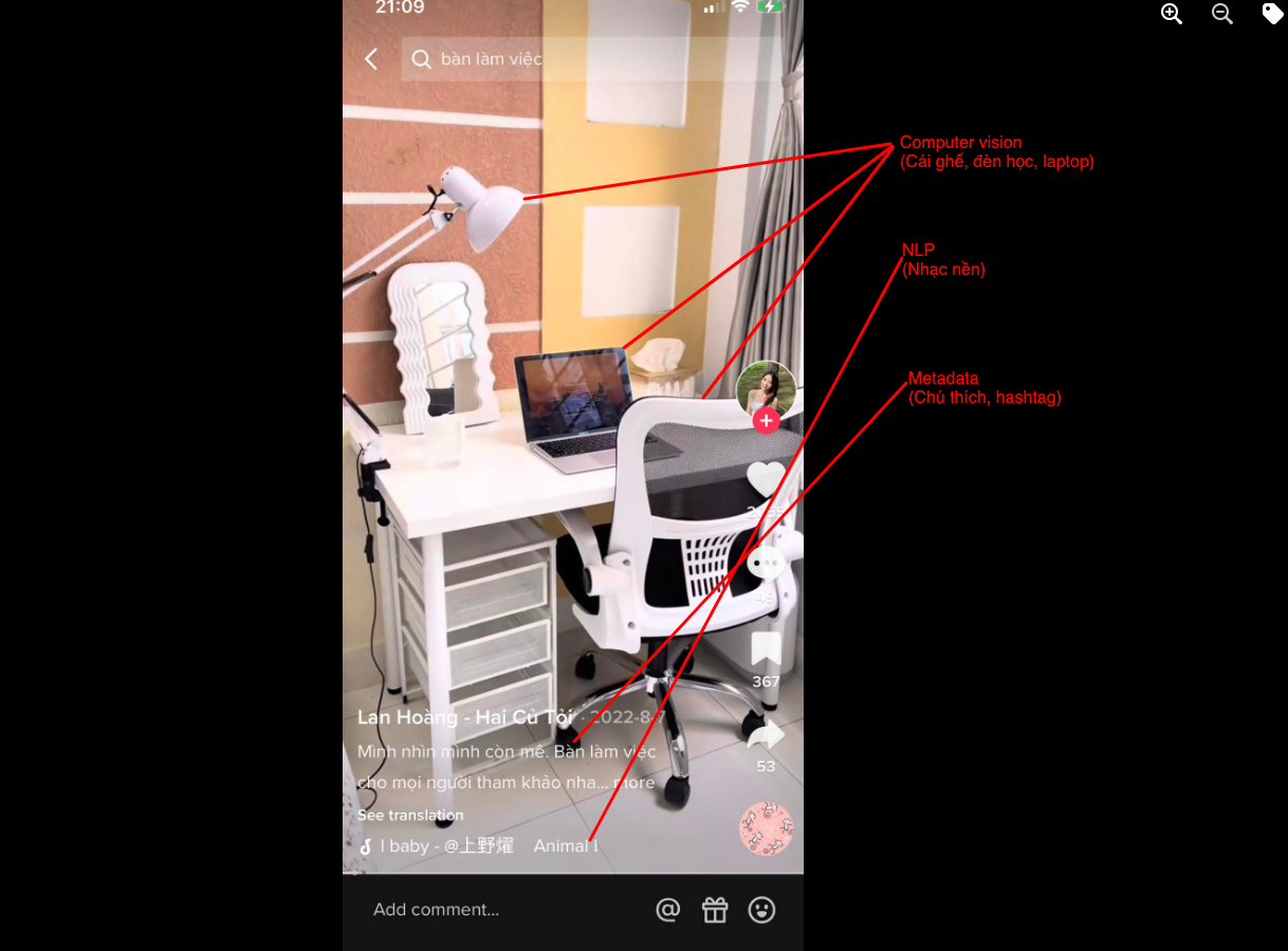 Bước cuối cùng trong việc phân loại video TikTok là metadata mà người dùng cung cấp khi đăng: caption, hashtag #, v.v