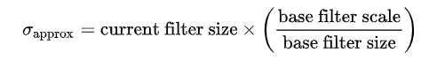 Bộ lọc hộp có kích thước 9 × 9 là xấp xỉ của một Gaussian với σ = 1,2 và đại diện cho mức thấp nhất (độ phân giải không gian cao nhất) cho các bản đồ phản hồi đốm màu.