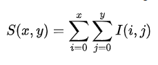 Tổng của hình ảnh ban đầu trong một hình chữ nhật có thể được đánh giá nhanh chóng bằng cách sử dụng hình ảnh tích phân, yêu cầu đánh giá ở bốn góc của hình chữ nhật.