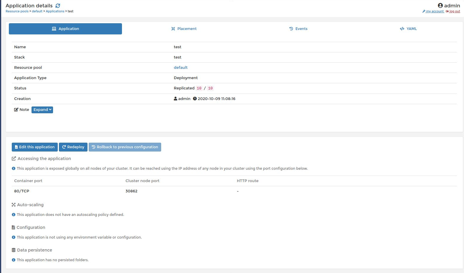 Vào detail của application test