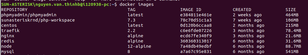 Để kiểm tra xem docker đang có các image nào thì ta chạy lệnh “docker images”