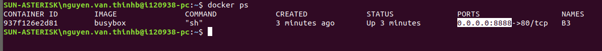 docker run -it --name B3 -p 8888:80 busybox