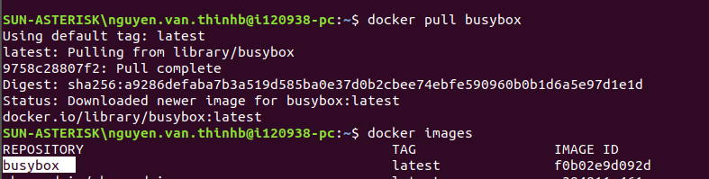 Tải image busybox: là 1 công cụ nhỏ gọn chứa sẵn các lệnh ubuntu