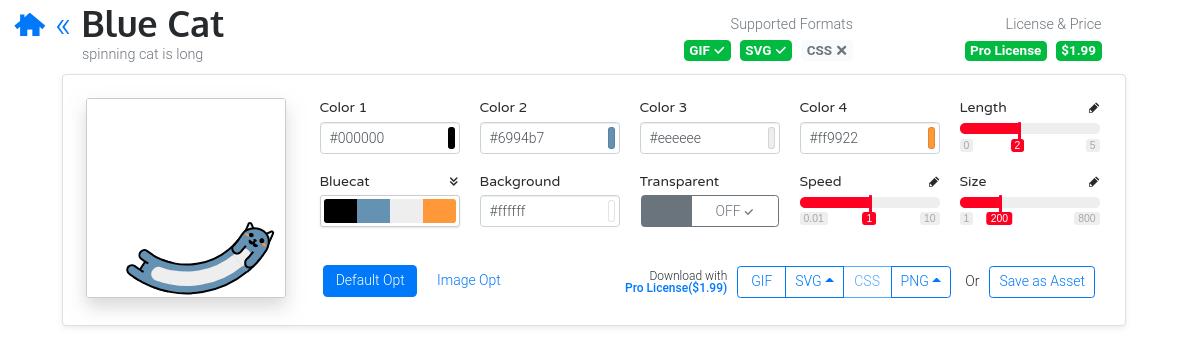 Vào xem thì mình nhận ra là trang này có rất nhiều hình loading vui vui, mà như con mòe này ko chỉ có thể đổi chọn palette màu, mà còn chỉnh được speed, size rồi preview trước khi download với mấy loại định dạng nữa.