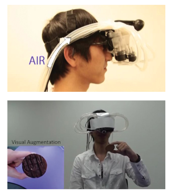 Hình trên là một ví dụ MetaCookie: Một màn hình khứu giác được kết hợp với sự tăng cường trực quan của một cookie đơn giản để cung cấp ảo giác của một cookie có vị socola.