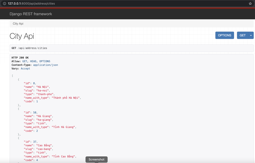- GET /api/address/cities: Lấy ra danh sách tất cả tỉnh/thành phố của Việt Nam