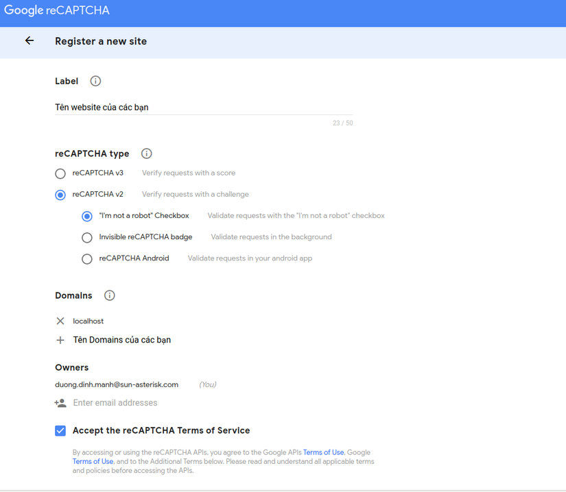 Tiếp theo các bạn hay click vào link mà mình để bên dưới Để Tạo Google reCaptcha cho website của bạn