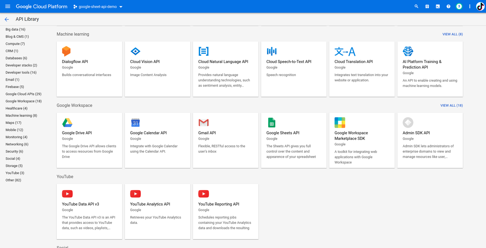 Chọn Google Drive APi, Google Sheets API và lần lượt kích hoạt( Enable )