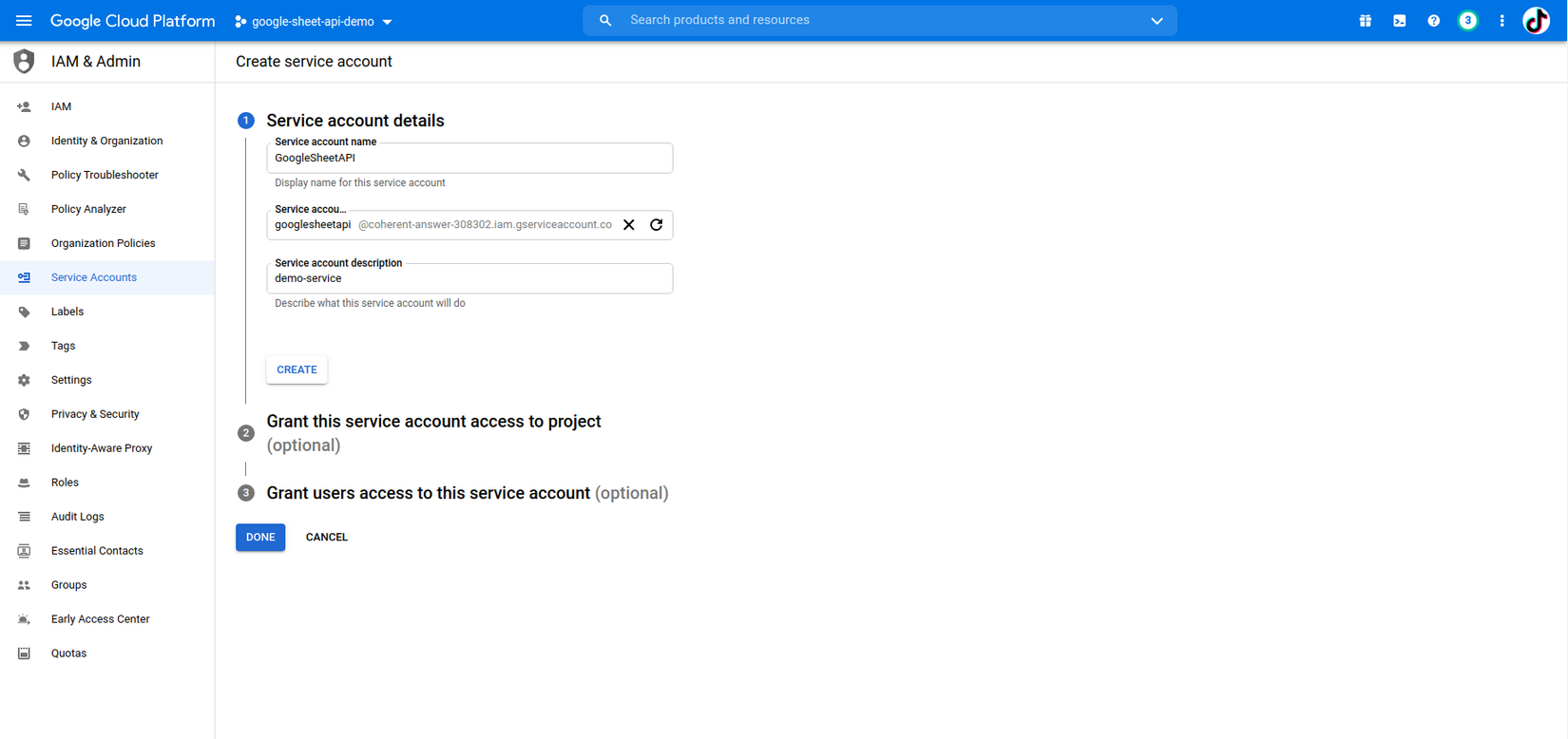 B3: Tạo Service account: