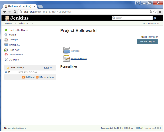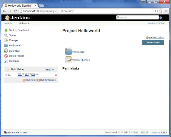 - Khi quá trình xây dựng hoàn tất, trạng thái của bản dựng sẽ hiển thị nếu bản dựng thành công hay không. Trong trường hợp của tôi, bản dựng sau đã được thực hiện thành công. Nhấp vào số 1 trong lịch sử Xây dựng để hiển thị chi tiết về bản dựng.