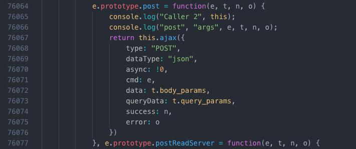 Đào bới tiếp trong "biển code" thì phát hiện class này được extend ra từ APIService và có tên readAPIService. Có thể thêm console.trace(); để sinh ra stack call đến hàm được gọi.