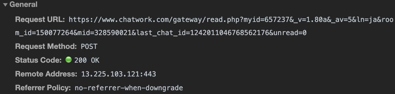 vậy là Chatwork sẽ gửi một POST request để cập nhật thông tin. Ta chú ý đến last_chat_id, đây chính là id của chat message cuối cùng mà chúng ta đã đọc. Vậy nếu thay đổi id này thành id cuối cùng của box, ta sẽ giải quyết được bài toán