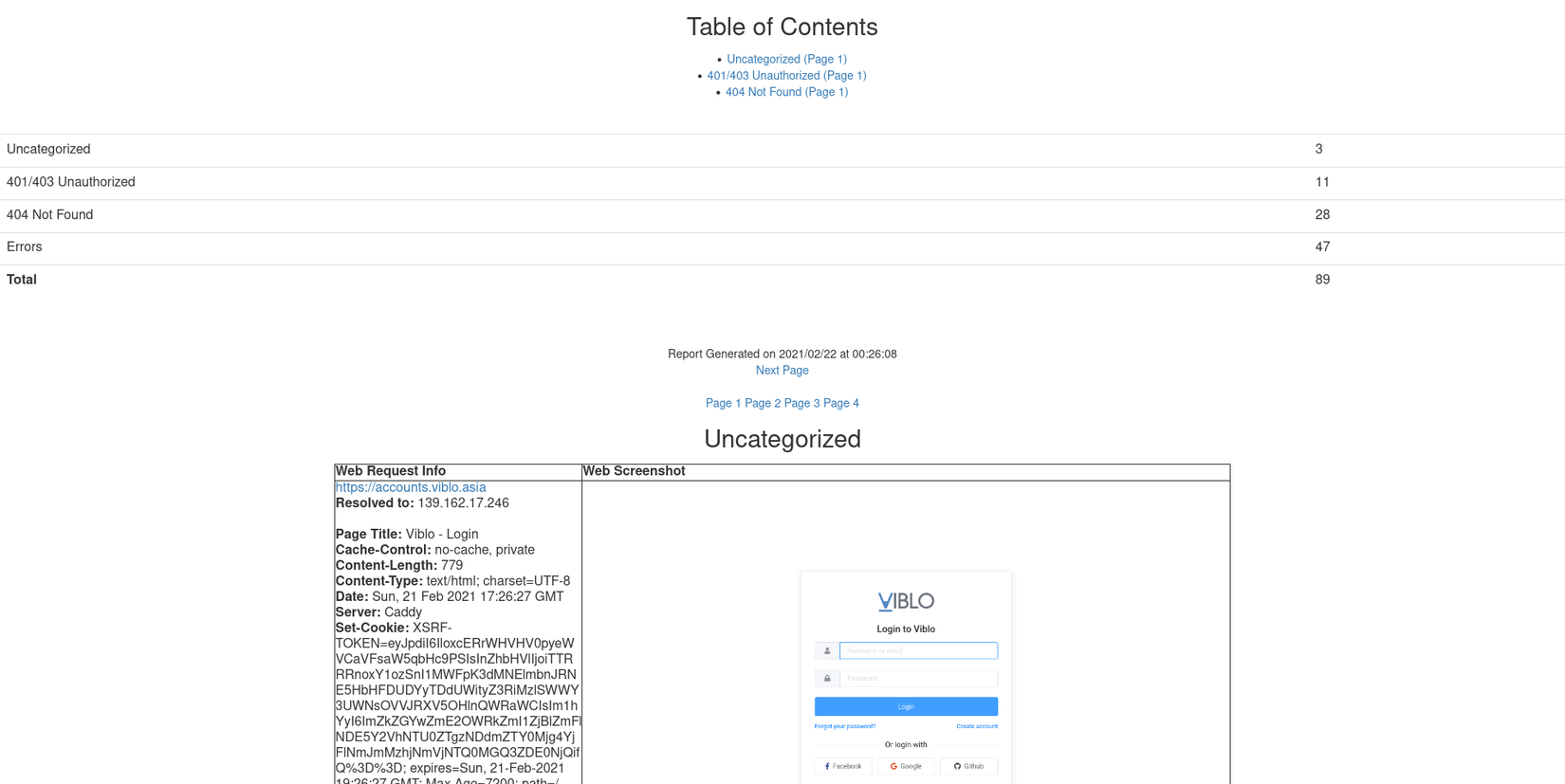 Báo cáo có hình ảnh của tên miền, thông tin header và địa chỉ IP. Những thông tin này rất hữu ích khi ta phân tích một trang web.