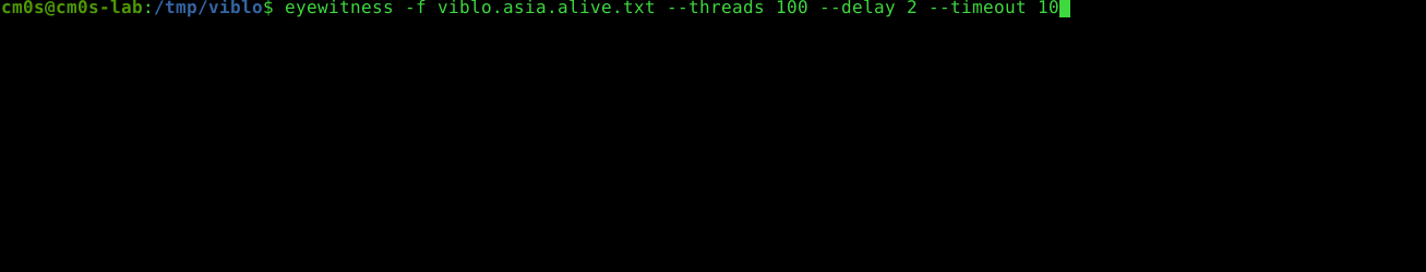 eyewitness -f viblo.asia.alive.txt --threads 100 --delay 2 --timeout 10