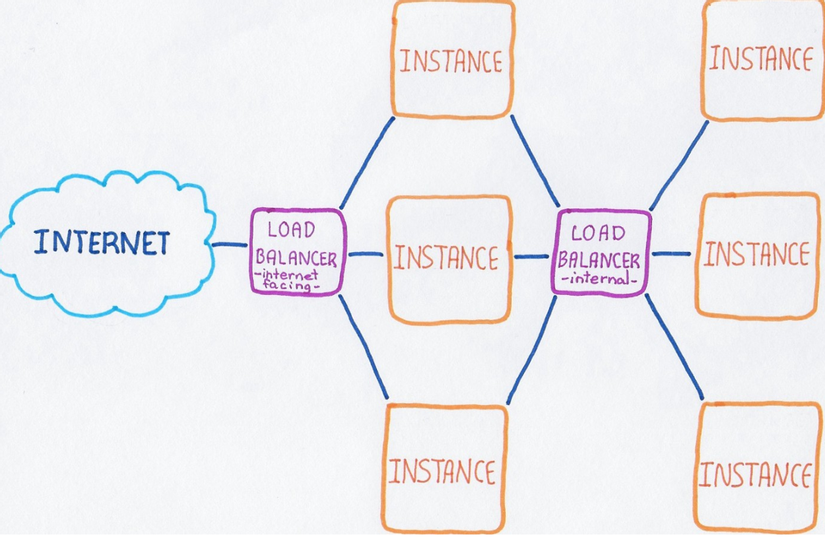 Trong hình bên trên có 2 loại ELB là internet facing và intenal. Với Internet facing, ELB phân phối request từ phía client (Internet) vào trong các instances. Ngoài ra chúng ta cũng có thể cấu hình bộ cân bằng tải bên trong để phân phối lưu lượng truy cập nội bộ như database chẳng hạn