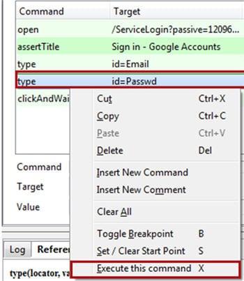 Selenium IDE cho phép người dùng thực hiện một bước kiểm tra duy nhất trong toàn bộ tập lệnh kiểm tra mà không cần thực thi toàn bộ tập lệnh bàng cách sử dụng tùy chọn “Execute this command”. Được sử dụng vào những lúc chúng ta muốn gỡ lỗi / xem hành vi của một bước kiểm tra cụ thể.