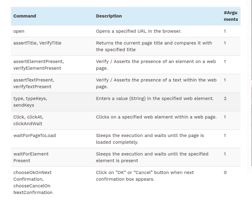 Có ba loại của lệnh Selenium IDE. Mỗi bước kiểm tra trong Selenium IDE đều thuộc bất kỳ 1 trong 3 loại nào sau đây.