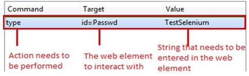 Mỗi 1 bước kiểm tra Selenium IDE được chia thành ba thành phần sau:
