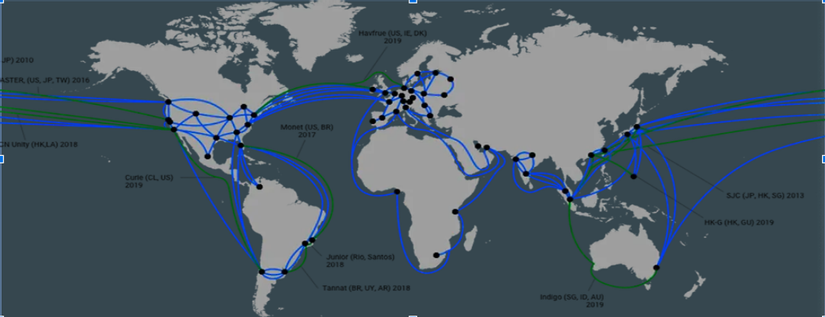 Mạng lưới cáp quang với hơn 70 trung tâm dữ liệu đặt tại 33 quốc gia