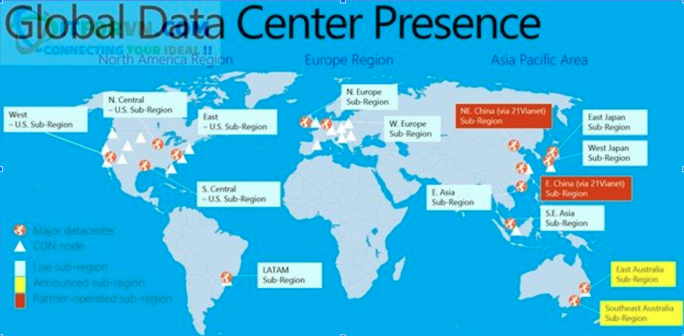 2. Vị trí của các Data Center của Microsoft trên thế giới