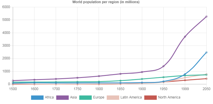 text: "World population per region (in millions)"