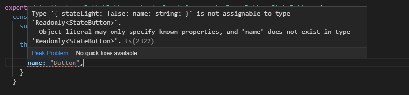 Giả dụ mình lại thêm 1 state mới là name mà chưa khai báo state kiểu gì ở interface: