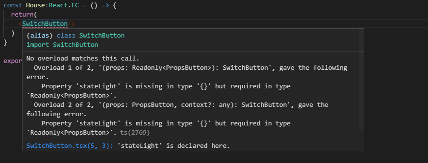 - Lúc này, mình sẽ tạo cho nó 1 interface tên là StateButton, ở đây mình có thể khai báo cho nó các state có thể có trong component, ở đây mình tạo 1 state có tên là stateLight kiểu boolean chỉ trạng thái bật/mở công tắc.