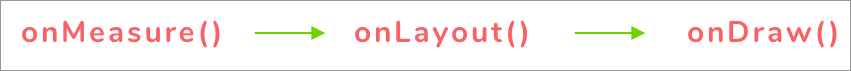 Ở đây, onMeasure() - đo kích thước của view và children của view có mặt ở đó, onLayout() - giúp thiết lập kích thước và onDraw() là giúp vẽ trên views.