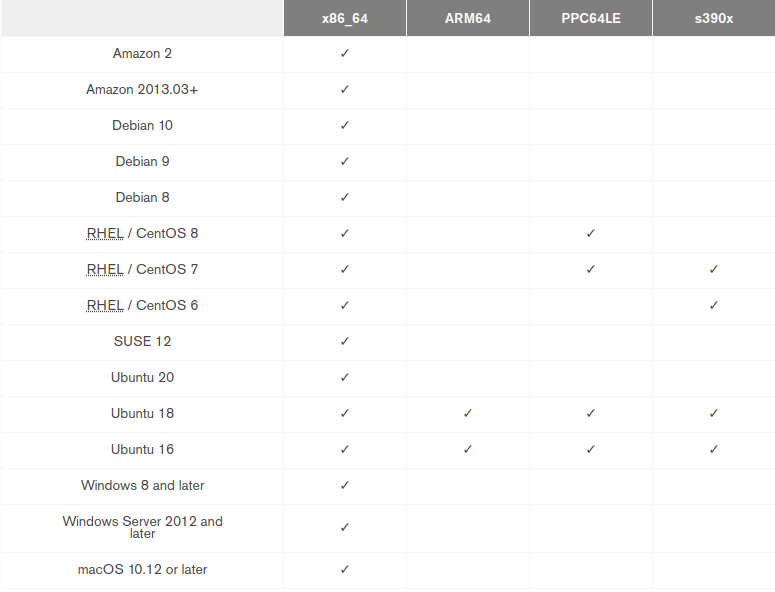 Các hệ điều hành được hỗ trợ. (thông tin lấy từ document của mongoDB)