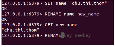 - Đổi tên của key hiện tại: RENAME [key] [newkey]