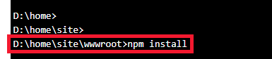 Sau khi tiệp tin tải lên đã hoàn tất, từ Kudu Remote Execution Console chạy lệnh npm install.