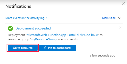 - Chọn Go to resource để xem nội dung bên trong function app mới tạo, và thao tác thực hiện công việc.