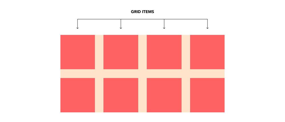 Tất cả các con trực tiếp của một grid container được gọi là các grid items.