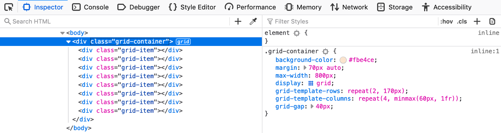 Chúng ta có thể sử dụng Firefor DevTools hoặc Chrome DevTool. Các công cụ này cung cấp các cách khác nhau để lập trình viên có thể inspect và debug các phần tử Grid.
