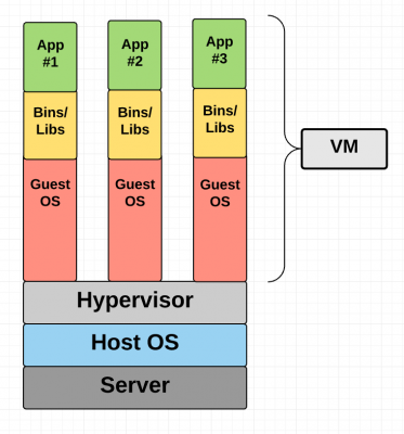Trong Virtualization, mỗi ứng dụng và hệ điều hành sống trong một thùng chứa phần mềm riêng biệt có tên Virtural Machine (VM) , trong đó VM hoàn toàn tách biệt, tất cả các tài nguyên điện toán như CPU, lưu trữ và kết nối mạng được gộp chung với nhau. Virtural Machine (VM) về bản chất là một giả lập của một máy tính để thực thi các ứng dụng giống như một máy tính thật. VMs chạy trên một máy vật lý sử dụng một thứ gọi là “hypervisor”. Hypervisor có thể là phần cứng, phần mềm hoặc là một bản firmware nào đó có thể chạy trực tiếp trên máy thật (host machine) có chức năng cho nhiều máy ảo chạy trên nó. Host machine sẽ cung cấp cho VMs những tài nguyên như là RAM, CPU. Những tài nguyên đó sẽ được phân bổ giữa các VMs theo cách mà bạn cho là hợp lý. Nếu một VM chạy nhiều ứng dụng hoặc nặng thì bạn phải cung cấp tài nguyên cho nó nhiều tài nguyên hơn những VMs khác trên cùng một host machine.