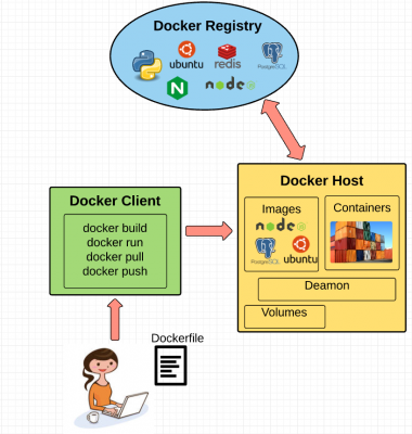 Docker Client: là một công cụ giúp người dùng giao tiếp với Docker host. Khi người dùng gõ lệnh docker run imageABC tức là người dùng sử dụng CLI và gửi request đến dockerd thông qua api, và sau đó Docker daemon sẽ xử lý tiếp. Docker client có thể giao tiếp và gửi request đến nhiều Docker daemon.