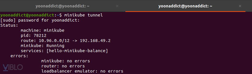 Cũng tương tự như phía trên, bạn sẽ phải tạo thêm 1 deployment có phân loại là LoadBalancer minikube kubectl -- create deployment hello-minikube-balance --image=k8s.gcr.io/echoserver:1.4 minikube kubectl -- expose deployment hello-minikube-balance --type=LoadBalancer --port=XXXX #chú ý type ở đây là LoadBalance chứ ko phải NodePort như ở trên nhé
