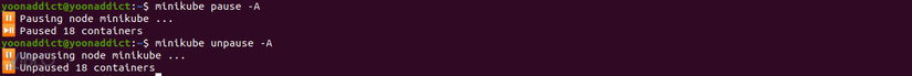 Tạm dừng (không ảnh hưởng đến các ứng dụng đang được deploy): minikube pause [flags] minikube unpause [flags] # ngược với pause #list flags # -A: pause/unpause tất cả namespaces # -m: pause/unpause theo namespaces chỉ định![]()