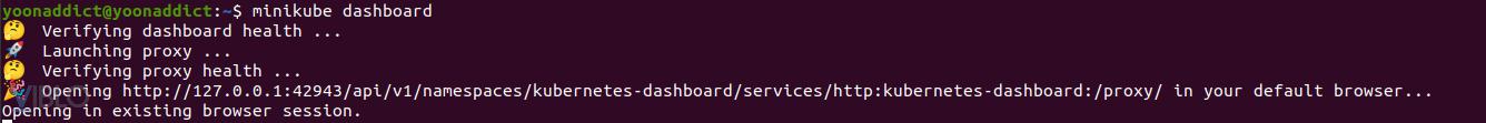 Sau khi chạy lệnh thì trình duyệt sẽ tự động mở tab dashboard như hình bên dưới: