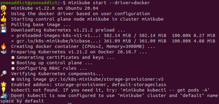 minikube starthoặcminikube start --driver=dockerđể khởi động minikube (nhớ là thay câu lệnh bằng driver tương ứng của bạn nhé). Và đây là thành quả: