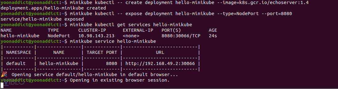 Và để chạy service lên thì bạn sẽ cần chạy câu lệnh minikube service hello-minikube