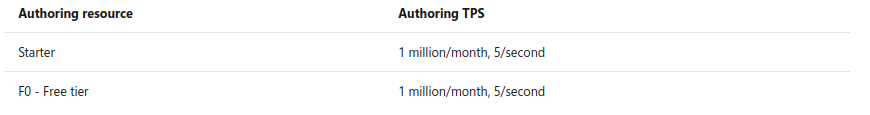 - machine-learning entities + roles: composite, simple, entity role: Giới hạn 100 thực thể mẹ hoặc 330 thực thể, tùy theo giới hạn mà người dùng truy cập. Các thành phần phụ có thể được lồng vào nhau lên đến 5 cấp độ, với tối đa 10 con mỗi cấp độ.