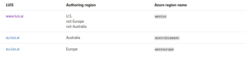 - Chi tiết hơn về việc phân chia khu vực trên thới giới theo tên miền bạn có thể tìm hiểu ở link sau: https://docs.microsoft.com/en-us/azure/cognitive-services/luis/luis-reference-regions