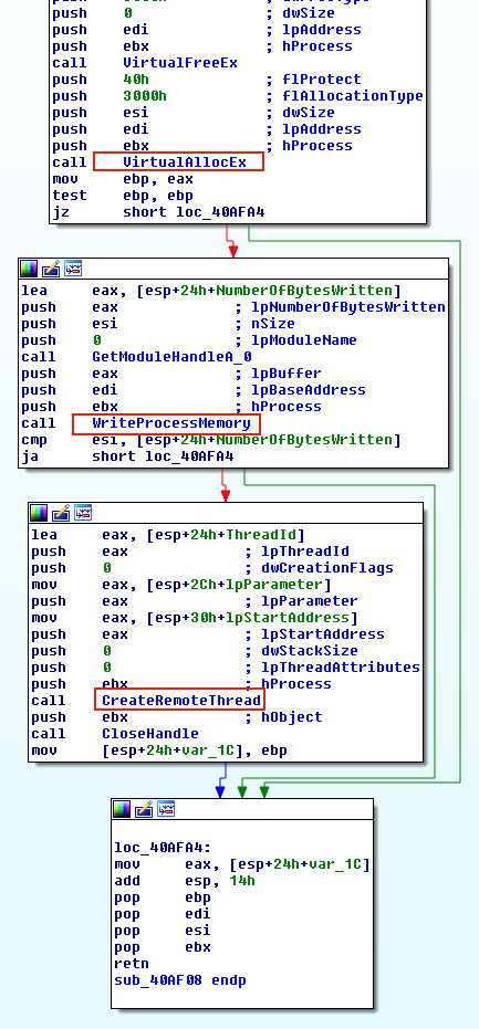 Vậy để có thể thực hiện hành công quá trình process injection ta cần lần lượt gọi các API : OpenProcess , VirtualAllocEx , WriteProcessMemory , CreateRemoteThread sau đó thực thi chúng với các parameter thích hợp