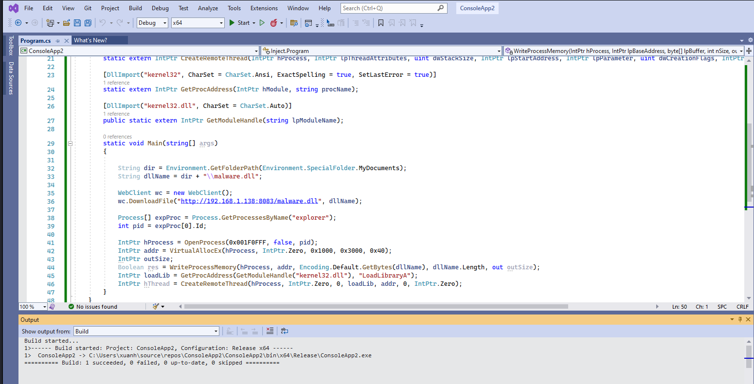 Ta nhớ lại chức năng của đoạn code này là Injection malware.dll được tạo ra từ msfvenom cho pocess
