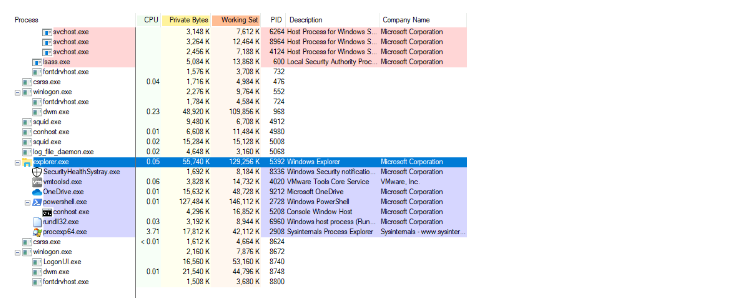 Kiểm tra tiến hình với process_dump (https://docs.microsoft.com/en-us/sysinternals/downloads/process-explorer)